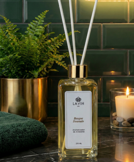 O Difusor Bosque Dourado foi criado para quem valoriza a presença sutil ao invés do impacto imediato.